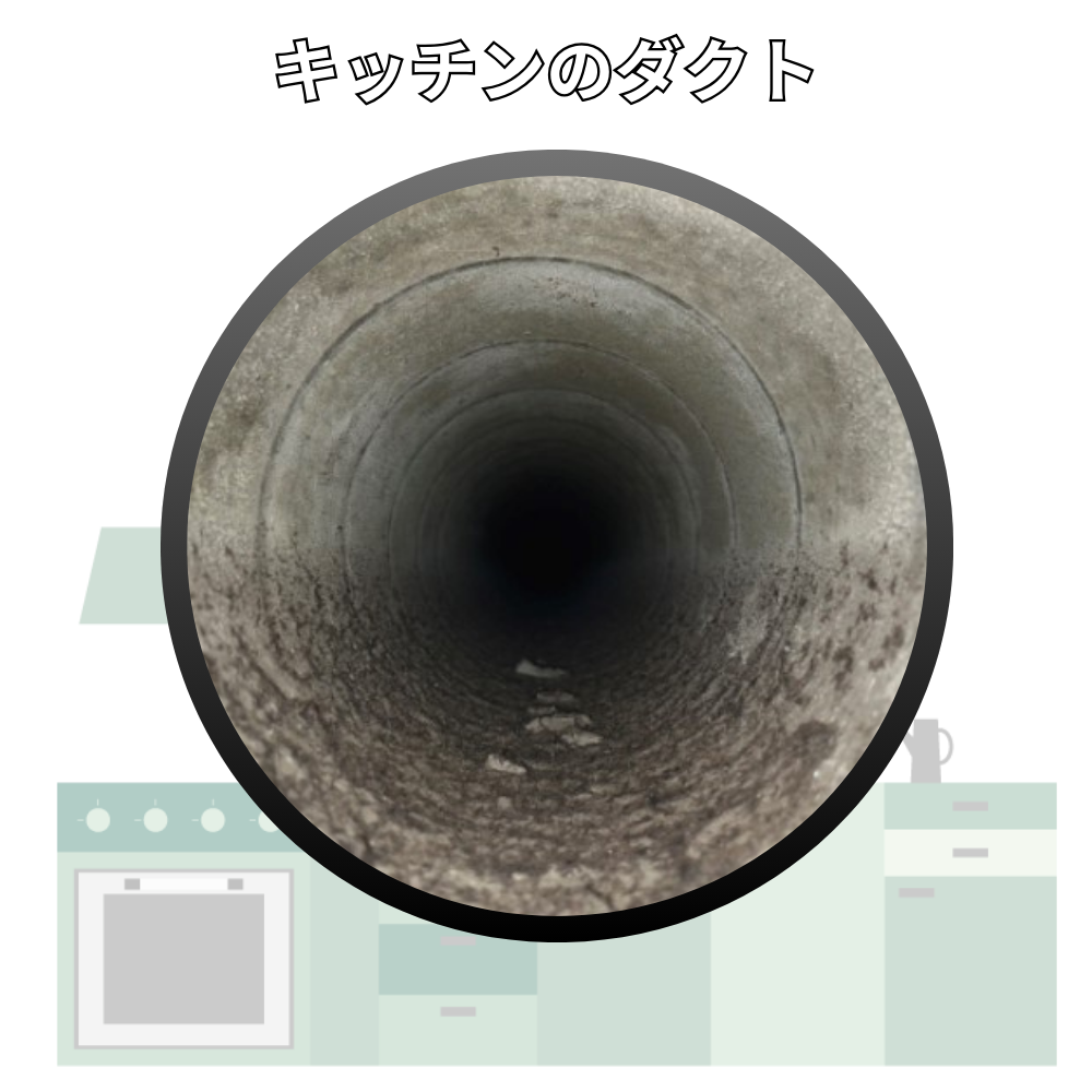 ダクト内部に油・埃・湿気がたまると、換気力の低下、臭い戻り、湿気のこもりなどの原因になります。