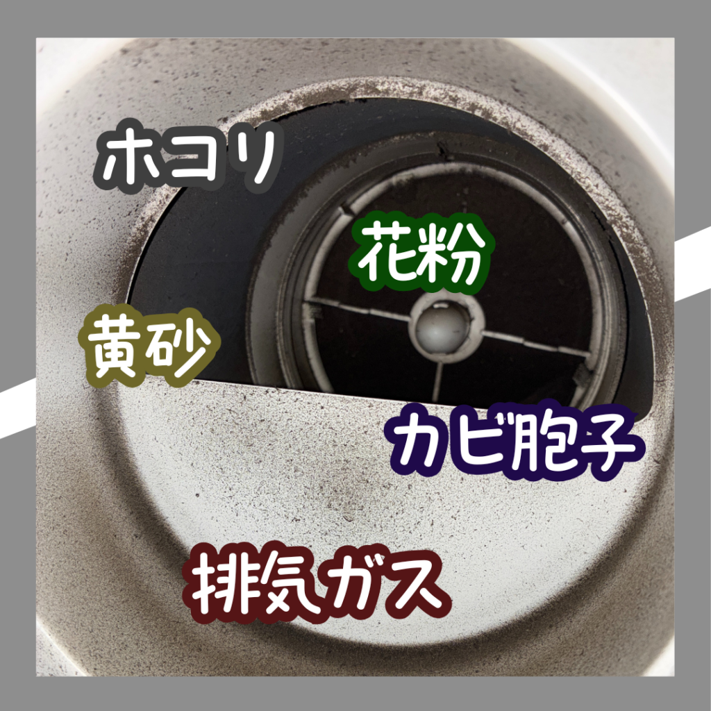 給気口の内部やフィルターには、時間が経つとホコリ・花粉・黄砂・カビ胞子・排気ガスの粒子などがたまりやすくなります。
